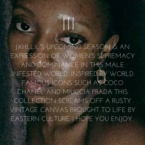 Early suprise, this is a women's collection, it aims to empower women to be comfortable amd look good in their own skin. Coco Chanel is Jahllil's biggest inspiration biggest inspiration behind the cuts as they incorporate both vintage and modern classy style, bringing back a 1999 pop culture JXHLLIL is definitely going to turn some heads.